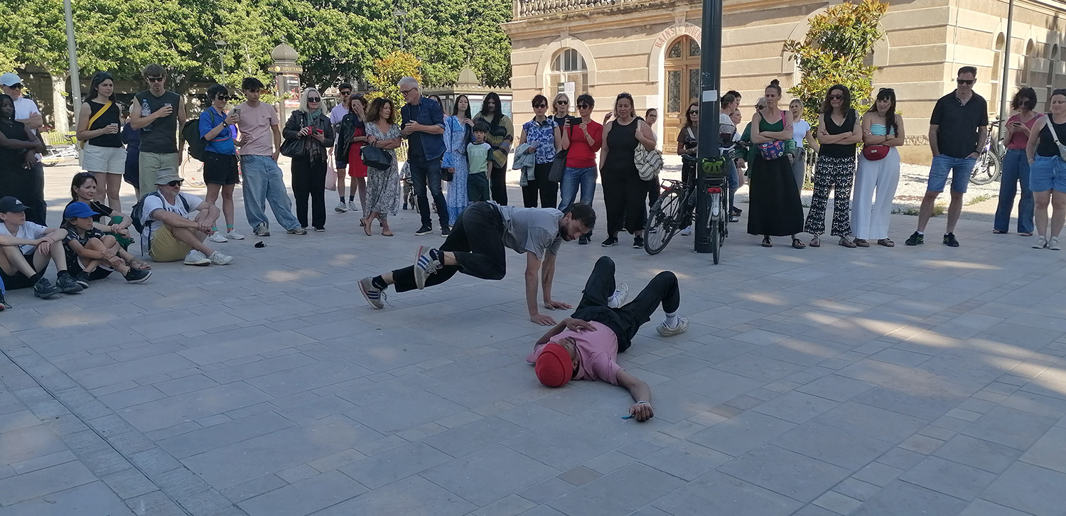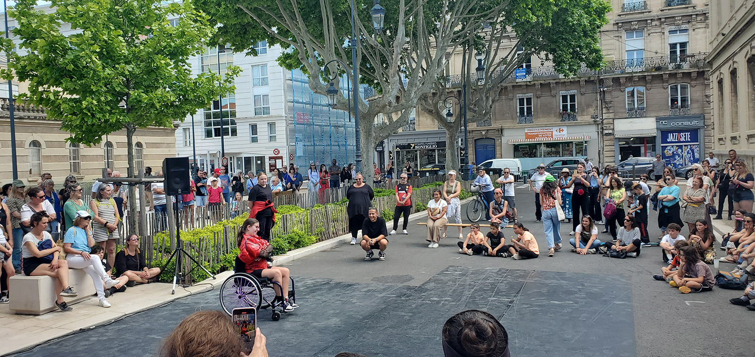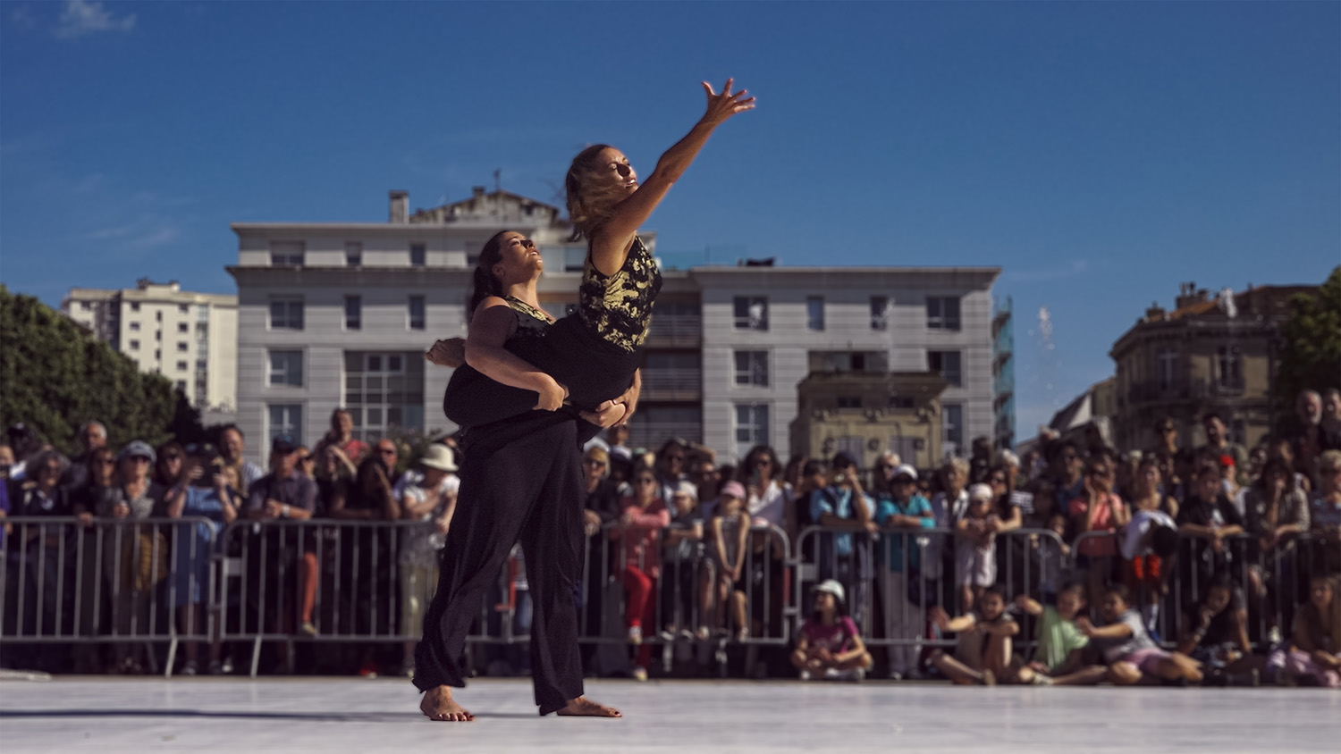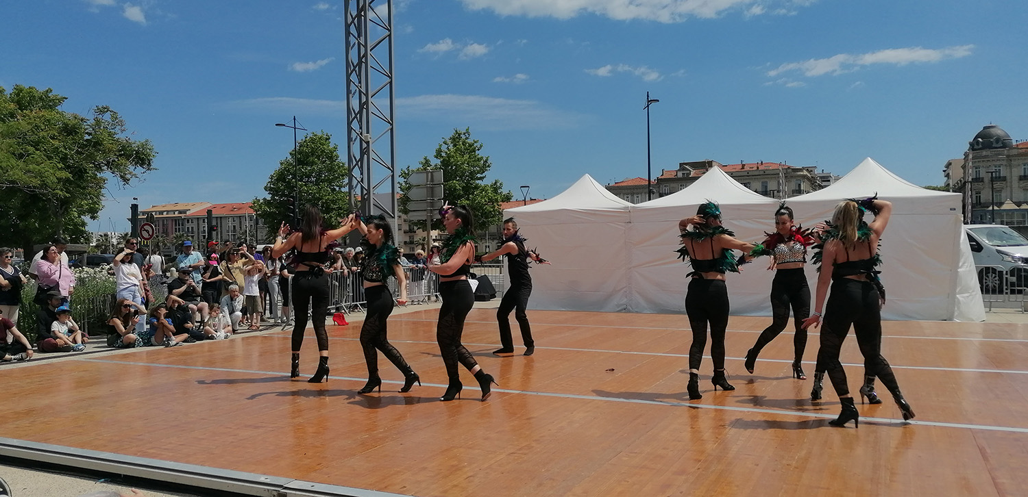 Entre la Place Victor Hugo, le Quai Maillol et le Parvis de la gare, vous avez vibré avec les écoles de danse, les associations, les danseur·euse·s amateur·ice·s, les compagnies professionnelles et les volontaires qui ont enflammé la scène ouverte et la battle.
