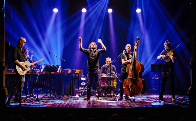 Pour ce spectacle inclusif mené de main de maître par Mathias Imbert et sa contrebasse, il s’entoure de Mathieu Werchowski au violon, Laurent Paris aux percussions et Brunoï Zarn à la guitare, Lucie Delmas au marimba.