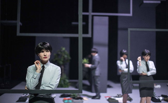 « Entre farce noire et théâtre d’anticipation, Nathalie Garraud et Olivier Saccomano explorent dans Monde nouveau les formes contemporaines de l’aliénation. »
