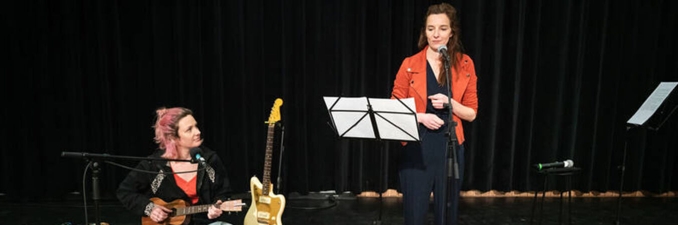 Pour cette lecture musicale, Sarah Decroocq mêle ukulélé, clavier, voix, looper, guitare et autres surprises pour proposer une interprétation sonore et originale de chaque extrait du livre d'Amandine Dhée.