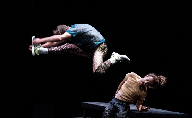 Trois danseurs tapis dans l’ombre, des silhouettes devenues hiboux, explorent cette matière élastique, poreuse, infinie. La nuit est leur deuxième peau.